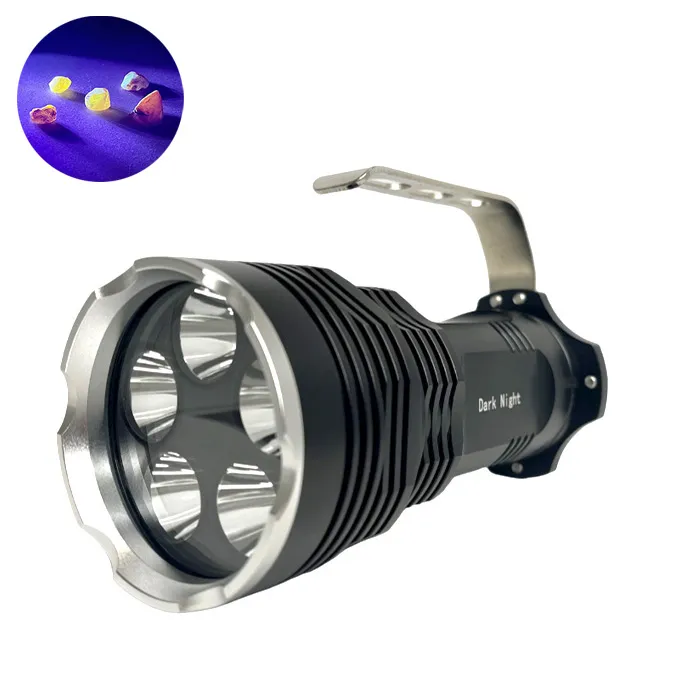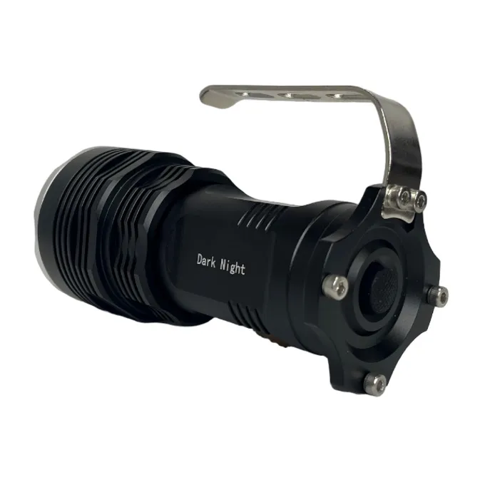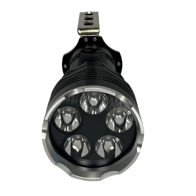 Latarka do bursztynu Dark Night 50W została zaprojektowana z 5 mocnymi diodami T6 LED o mocy 10W każda, co sprawia, że jest wystarczająco mocna, aby rozświetlić bursztyn z odległości nawet 50m. Latarka posiada skupiony stożek świetlny o szerokości zaledwie 50cm na 2m. odległości, co sprawia, że światło jest wyjątkowo intensywne i przydatne do patrzenia daleko na plaży lub przebijania się przez wodę. Praca na jednym ładowaniu do 6 godzin (przy zastosowaniu akumulatorów 2600 mAh)