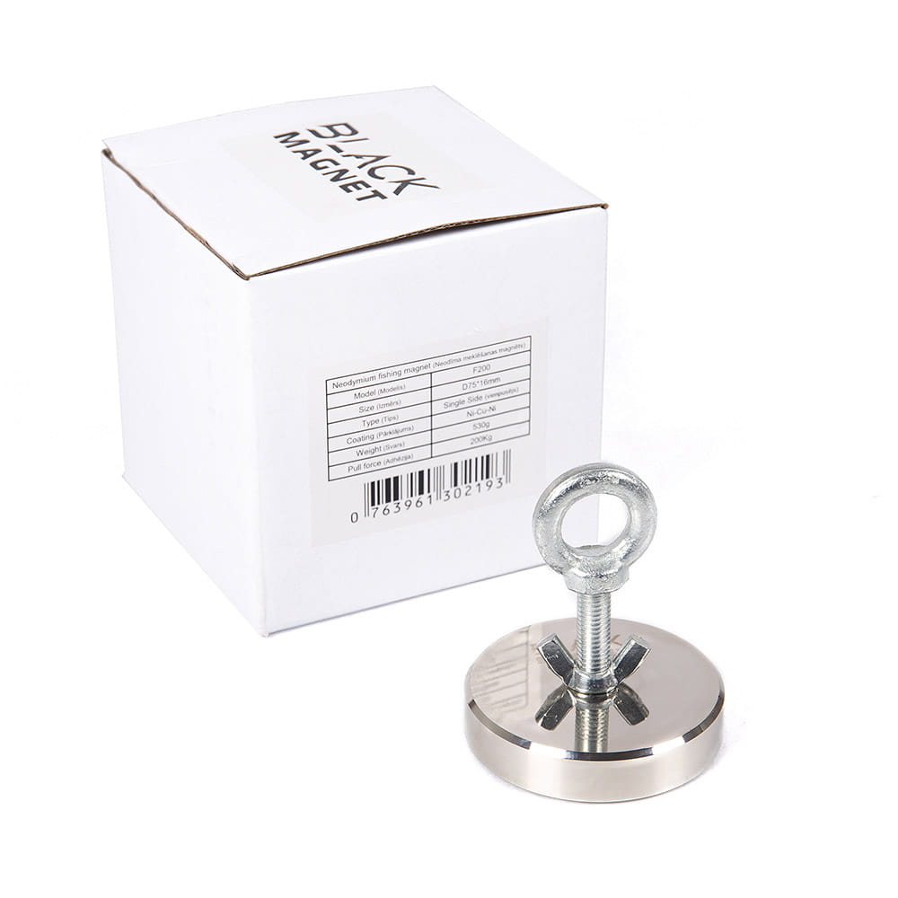 Magnes F200 jest jednym z najpopularniejszych modeli, zrywalność na poziomie 200 kg, doskonale sprawdzi się w poszukiwaniu militarki. Jest wygodny i praktyczny w użyciu. Każda osoba bez specjalnego treningu fizycznego może znaleźć i wydobyć metalowe przedmioty z głębin jeziora, rzeki lub studni. Magnes poradzi sobie zarówno w wysokich, jak i niskich temperaturach. Brud i olej nie będą przeszkodą w podnoszeniu ładunku i utrzymywaniu go. Zaprojektowany jako podwodny, magnes Black Magnet nie podlega korozji.